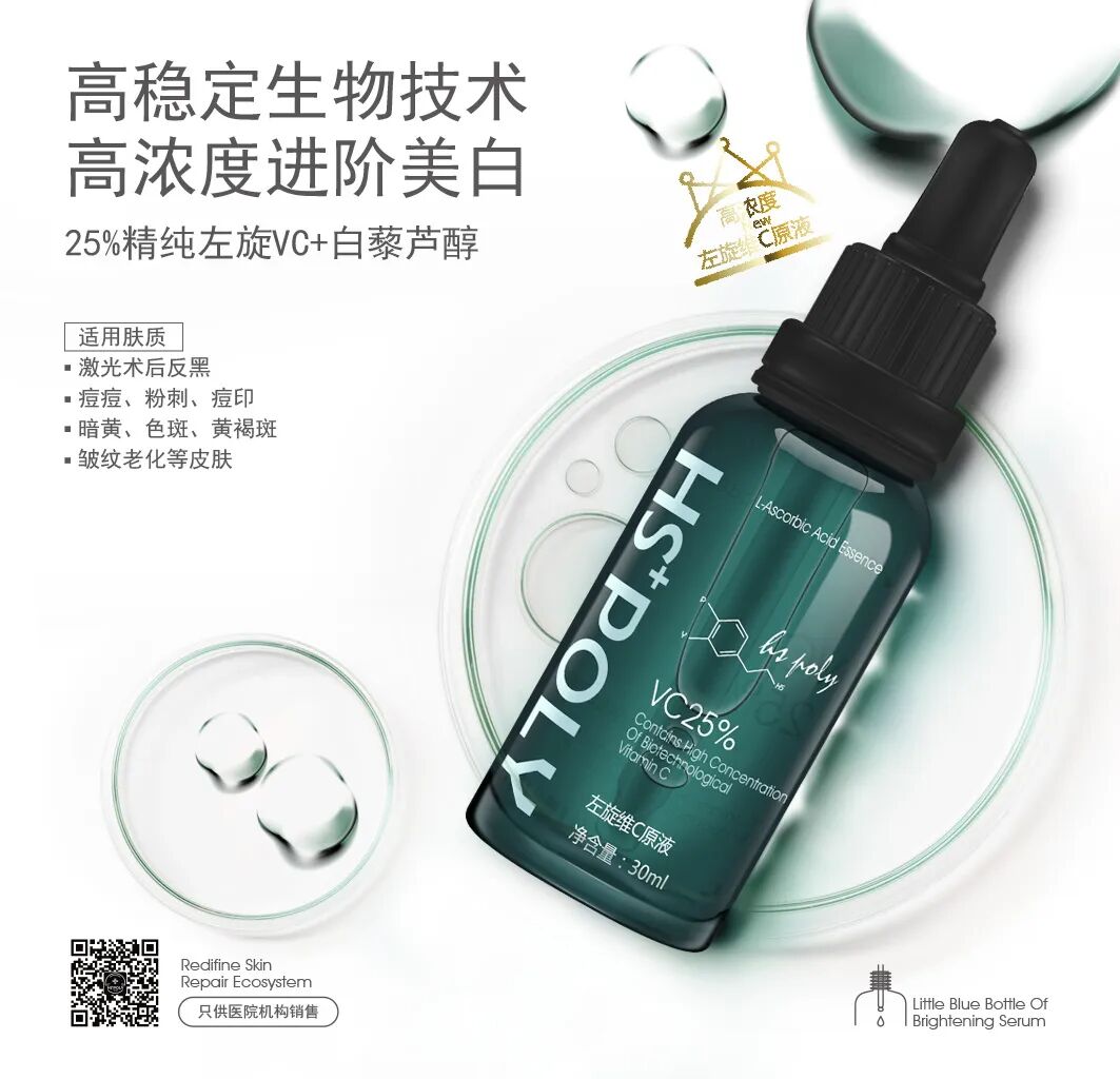 华桑葆骊左旋维C原液,富含25%精纯左旋维C和高浓度白藜芦醇,能快速软化老废角质,抗氧化清除自由基,对闭合粉刺的改善有显著的效果。